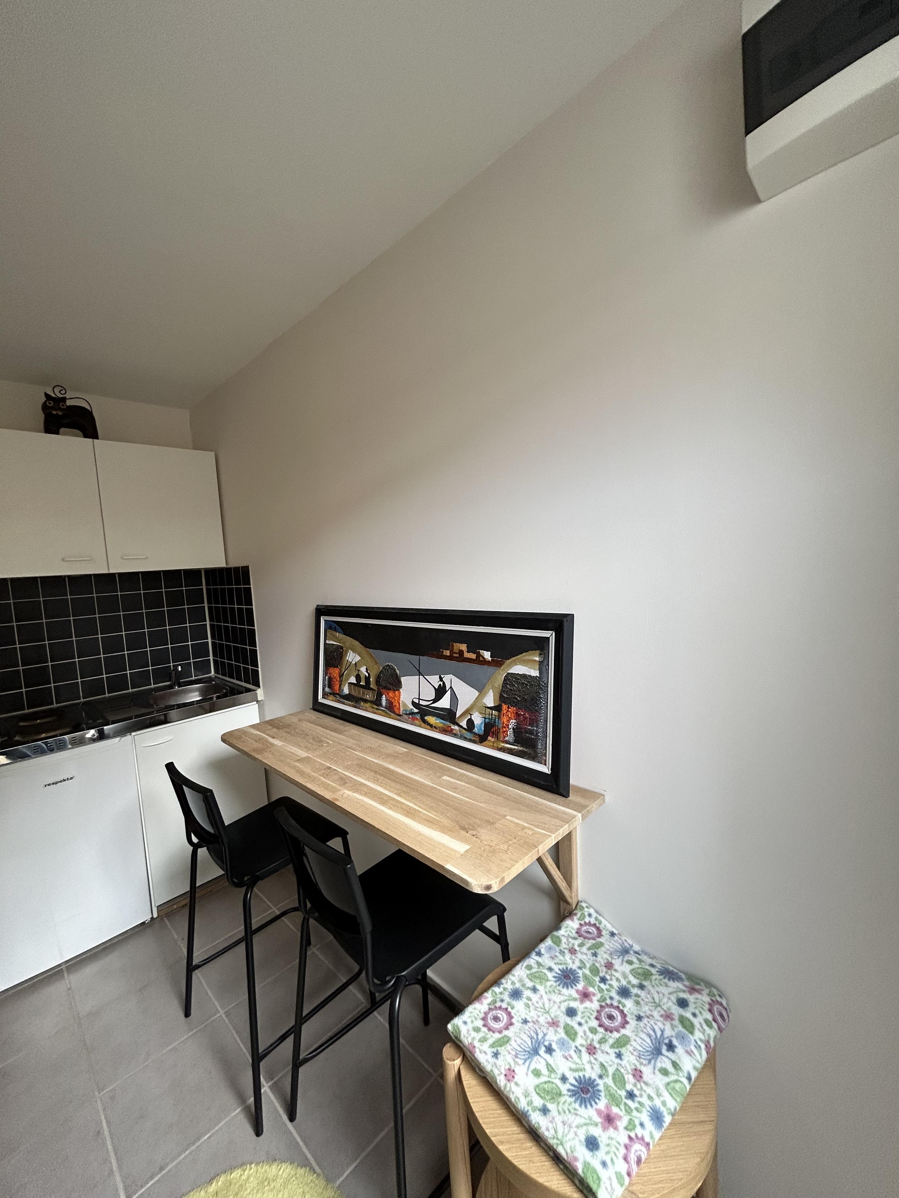 Möblerade liten lägenhet. Går att hyra permanent eller användas som övernattningslägenhet. 3000kr i hyra El ingår Internet ingår Parkering Ingår