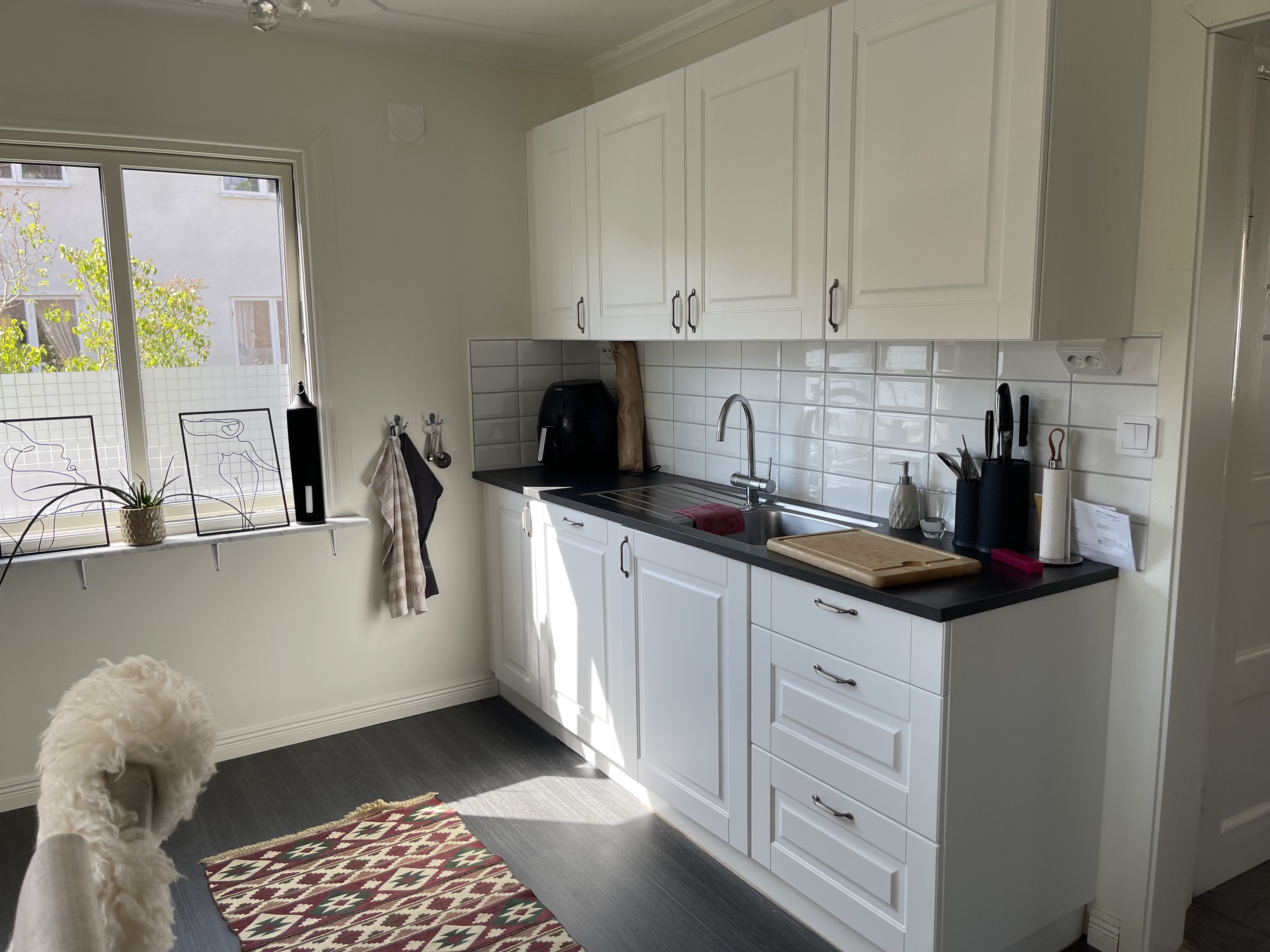 Renoverad 2,5-rumslägenhet på första plan i hyreshus med 5 lägenheter. Kök och 2 rum samt en stor hall med lite toalett och dusch. Hyra: 8 350:-/mån där värme ingår men hushållsel tillkommer. Fiber finns indraget i fastigheten. En trappa ner finns förråd, tvättstuga, cykelförråd och rum för att hänga tvätten.